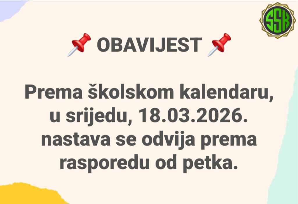 Povodom Dana nastavnika, ponedjeljak, 06.10.2025. godine je nenastavni dan.